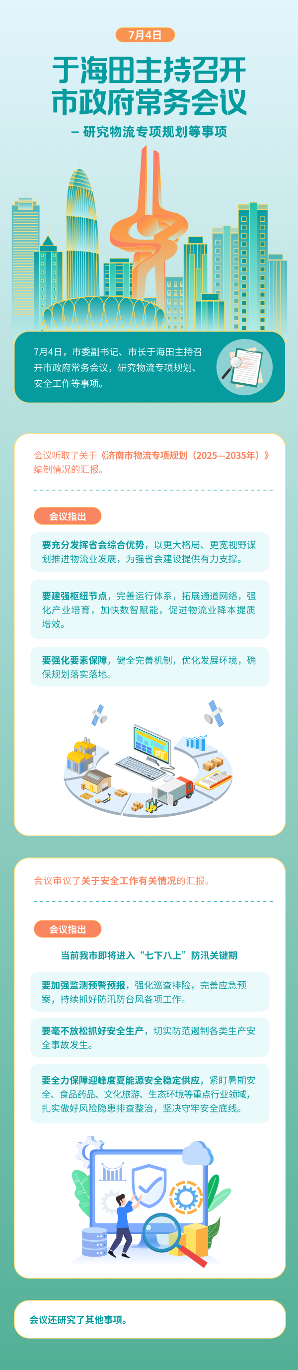 7月4日,市委副書記、市長于海田主持召開市政府常務會議,研究物流專項規劃、安全工作等事項。