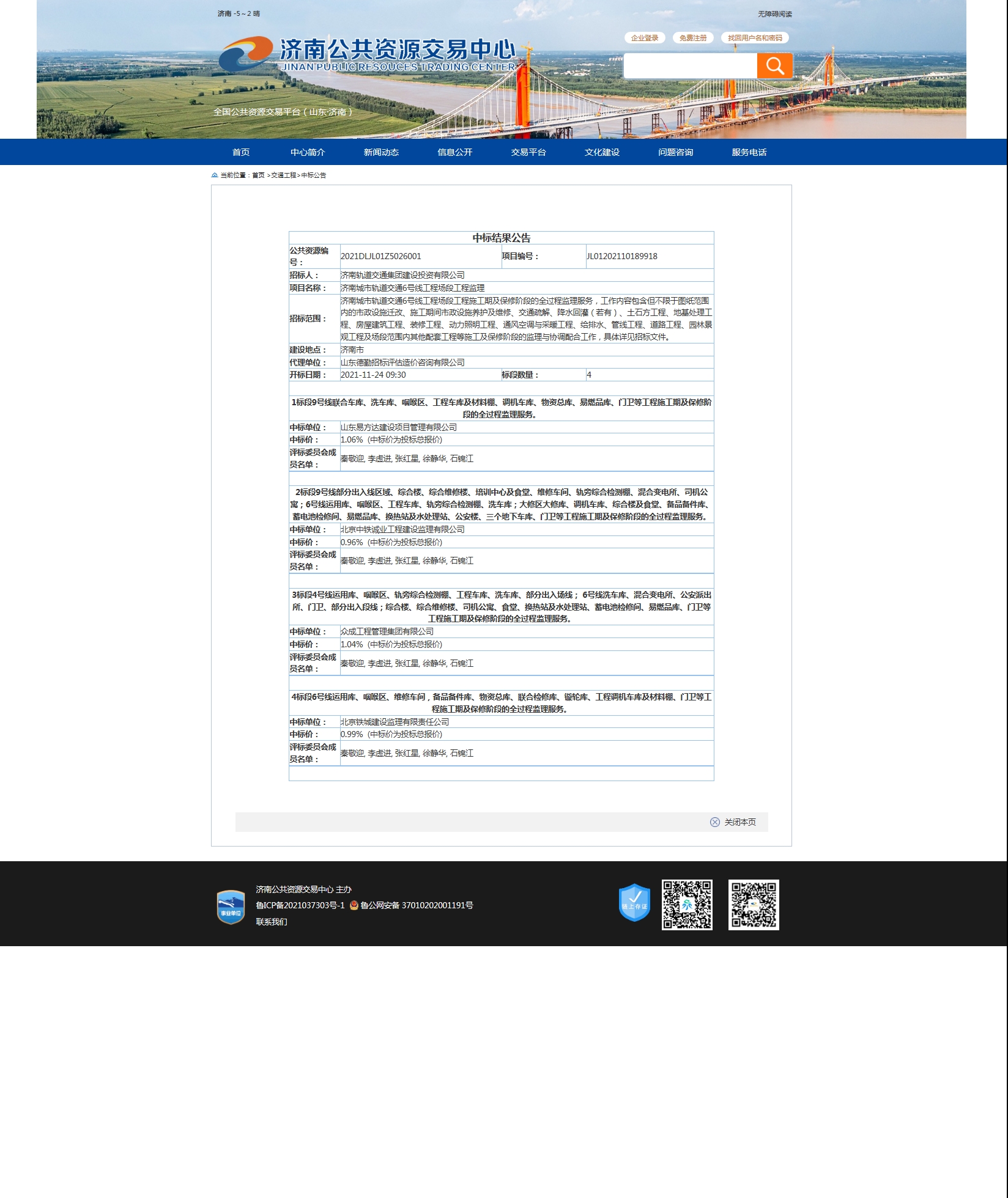 【招標(biāo)投標(biāo)信息】濟(jì)南城市軌道交通6號(hào)線工程場段工程監(jiān)理招標(biāo)投標(biāo)信息