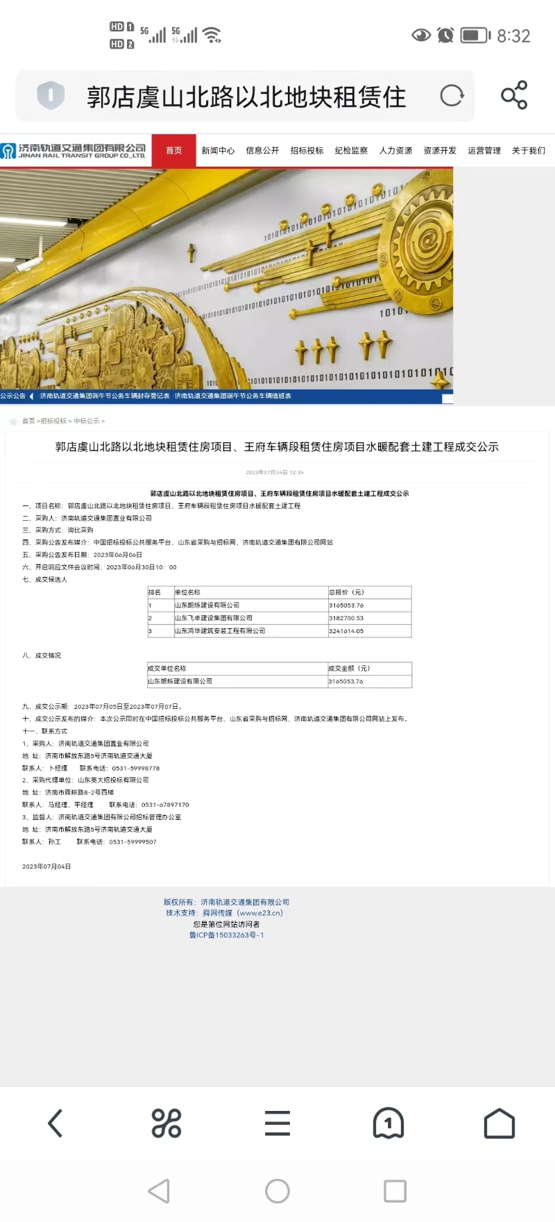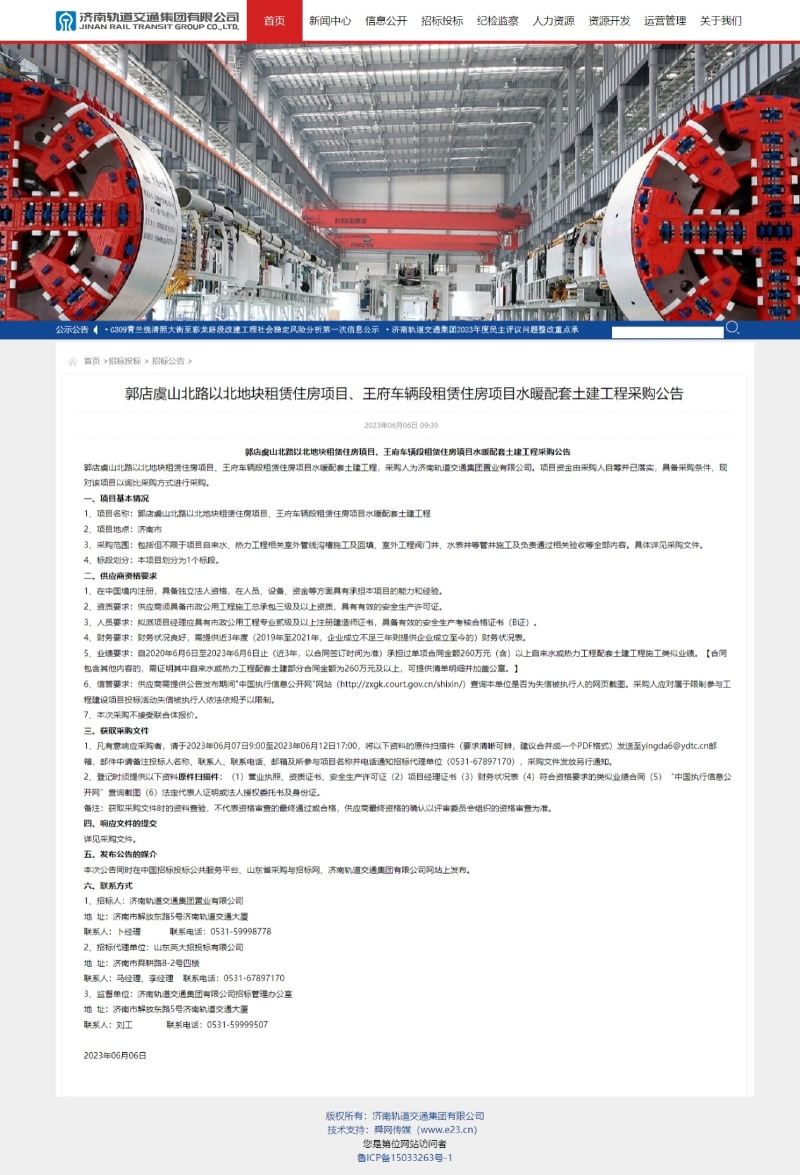 【招標投標信息】王府車輛段租賃住房項目招標投標信息(水暖土建) 發布日期:2023-12-01 16:51 信息來源:濟南市人民政府辦公廳 瀏覽次數:次 字體:【 默認 大 超大 】 【打印本頁】 【關閉窗口】