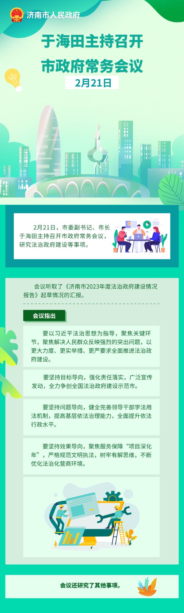 2月21日,市委副書記、市長于海田主持召開市政府常務(wù)會(huì)議,研究法治政府建設(shè)等事項(xiàng)。