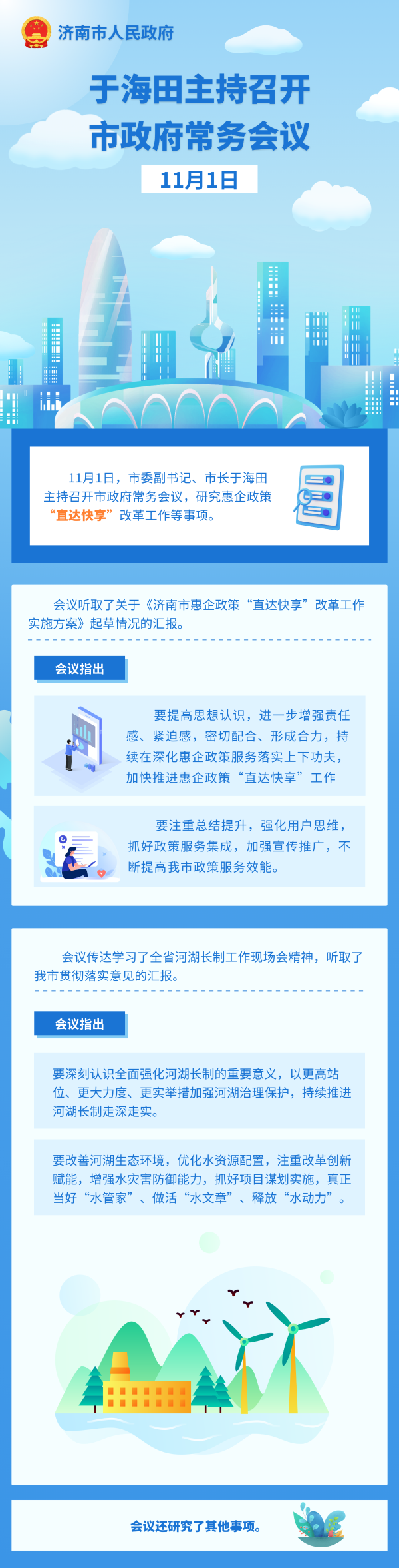 11月1日,市委副書記、市長于海田主持召開市政府常務(wù)會議,研究惠企政策“直達(dá)快享”改革工作等事項(xiàng)。