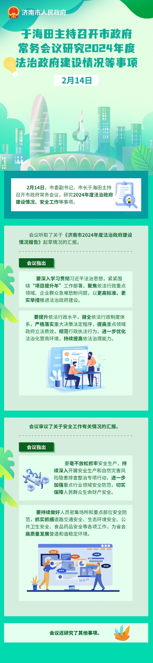 2月14日,市委副書記、市長于海田主持召開市政府常務(wù)會議,研究2024年度法治政府建設(shè)情況、安全工作等事項。