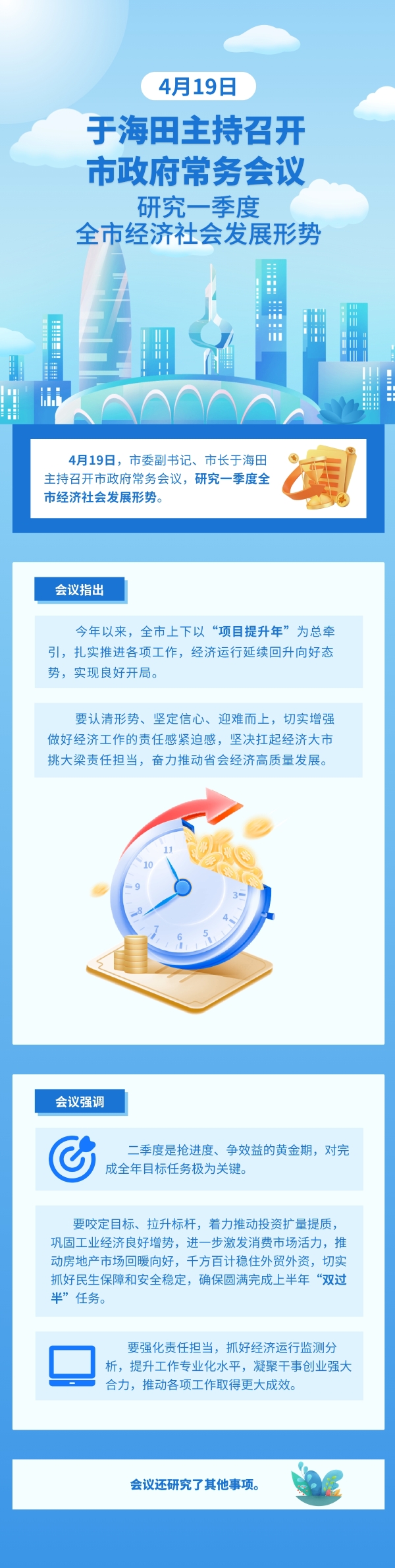 4月19日,市委副書記、市長于海田主持召開市政府常務會議,研究一季度全市經濟社會發展形勢。