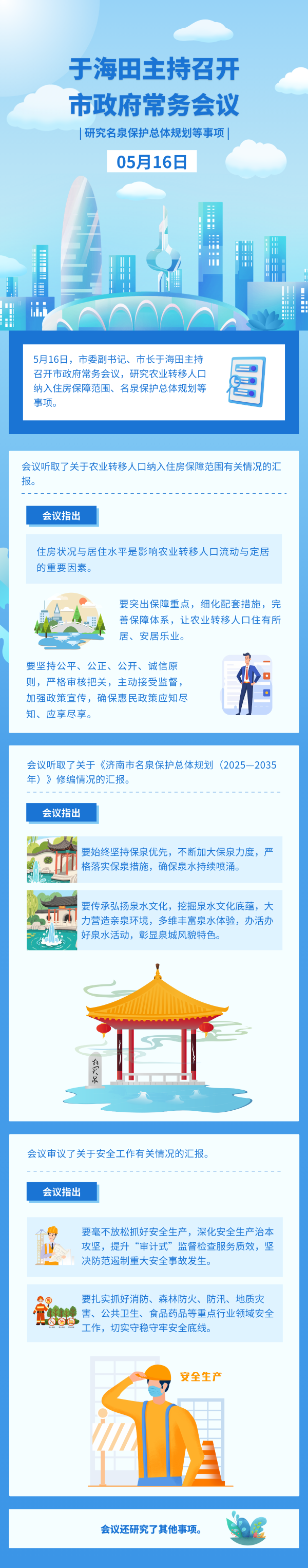 5月16日,市委副書記、市長于海田主持召開市政府常務(wù)會議,研究農(nóng)業(yè)轉(zhuǎn)移人口納入住房保障范圍、名泉保護(hù)總體規(guī)劃等事項。