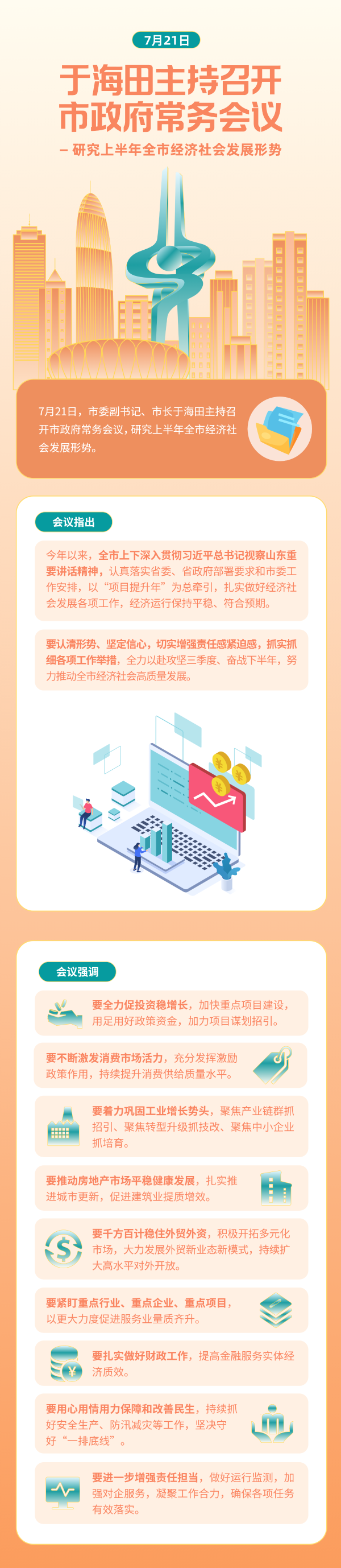 7月21日,市委副書記、市長于海田主持召開市政府常務會議,研究上半年全市經濟社會發展形勢。