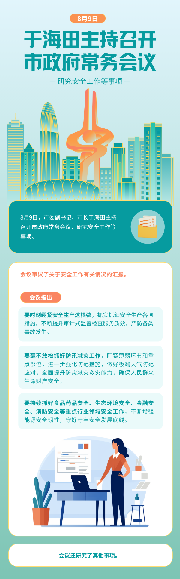 8月9日,市委副書記、市長于海田主持召開市政府常務會議,研究安全工作等事項。