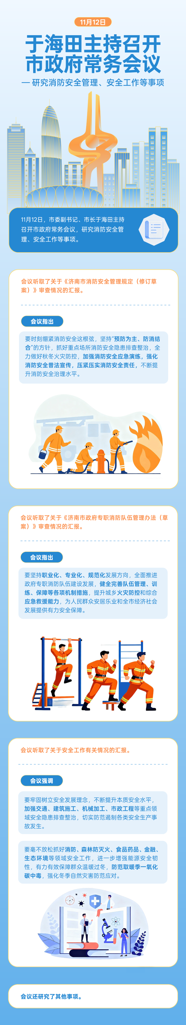 11月12日,市委副書記、市長于海田主持召開市政府常務會議,研究消防安全管理、安全工作等事項。
