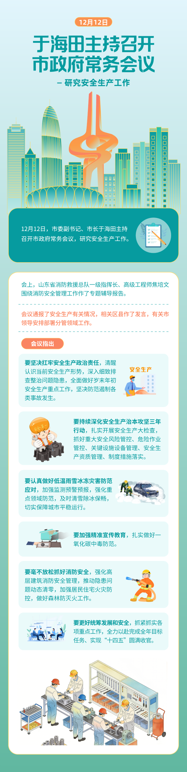 12月12日,市委副書記、市長于海田主持召開市政府常務(wù)會議,研究安全生產(chǎn)工作。