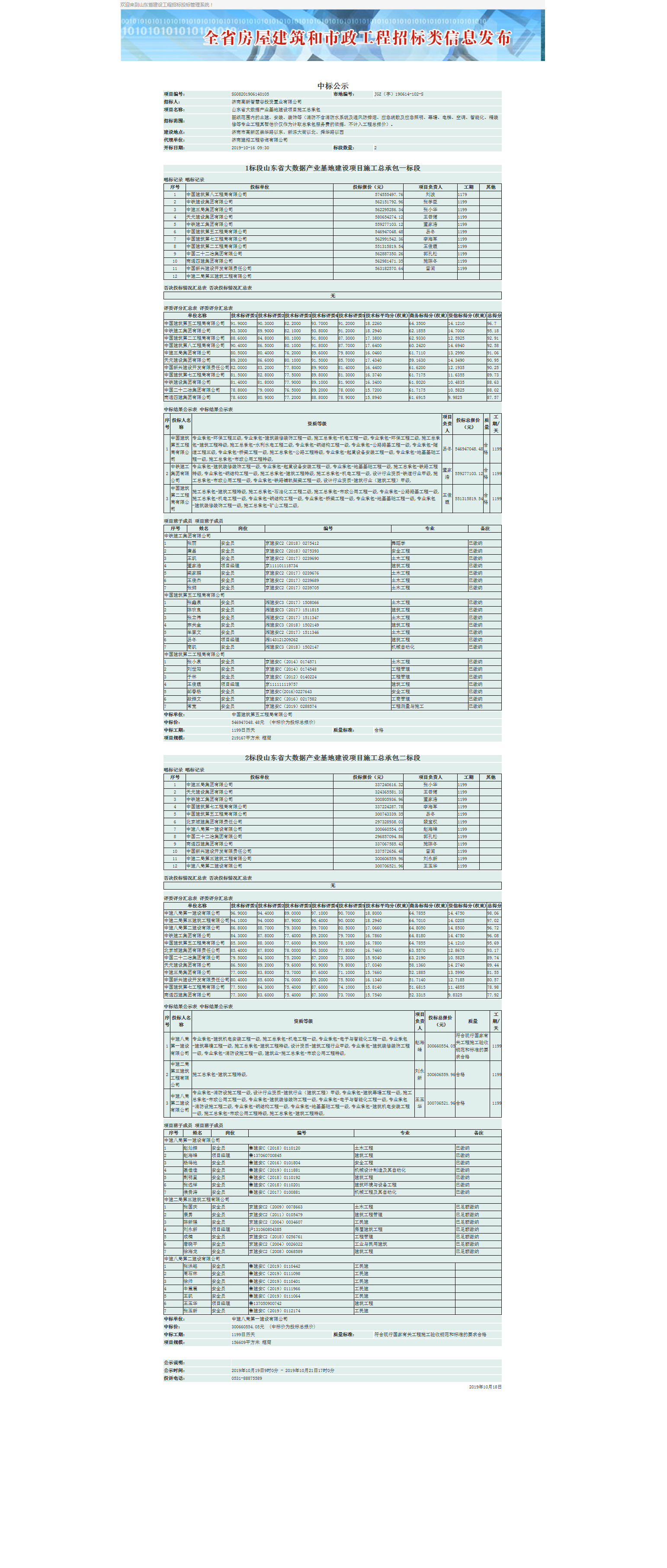 山東省大數據產業基地建設項目施工總承包中標公示 發布日期:2021-12-10 17:19 信息來源:濟南市政府門戶網站 瀏覽次數:次 字體:【 默認 大 超大 】 山東省大數據產業基地建設項目施工總承包-中標公示 【打印本頁】 【關閉窗口】