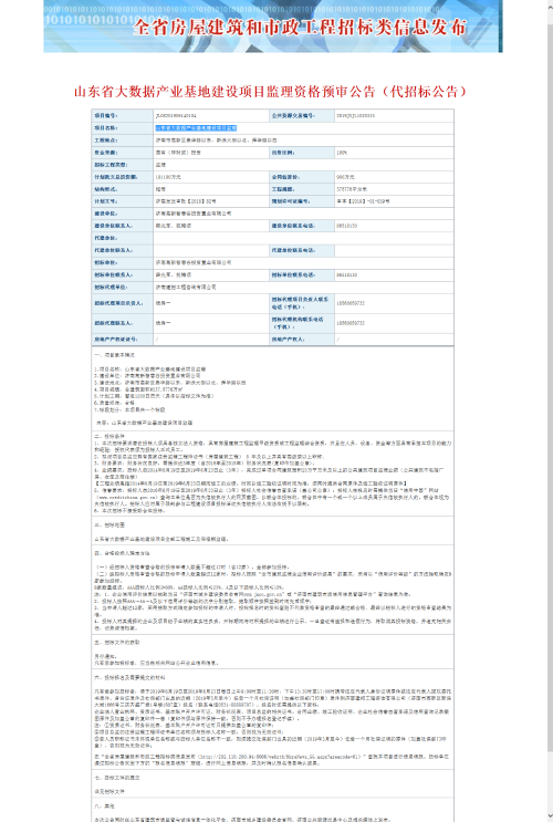 ?山東省大數據產業基地建設項目監理招標公告 發布日期:2021-12-10 17:21 信息來源:濟南市政府門戶網站 瀏覽次數:次 字體:【 默認 大 超大 】 山東省大數據產業基地建設項目監理招標公告 【打印本頁】 【關閉窗口】
