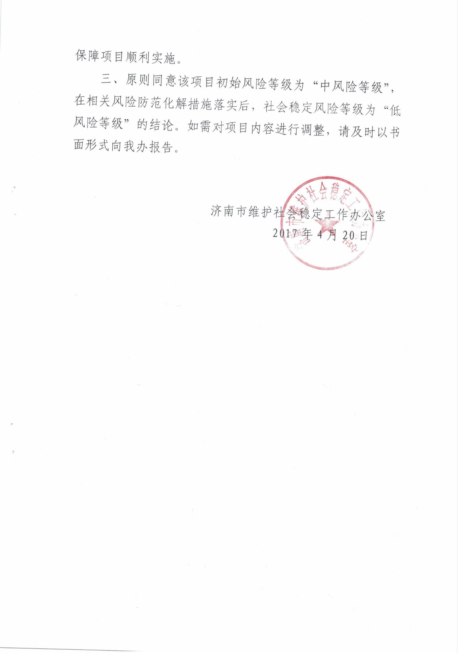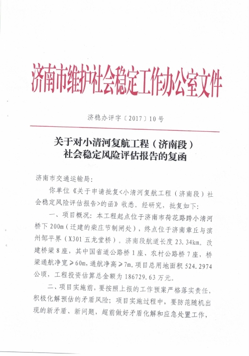 濟(jì)南市維穩(wěn)辦《關(guān)于對小清河復(fù)航工程(濟(jì)南段)社會穩(wěn)定風(fēng)險(xiǎn)評估報(bào)告的函》