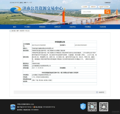 濟(jì)南軌道交通4號(hào)線一期工程唐冶北車輛段監(jiān)理中標(biāo)公告